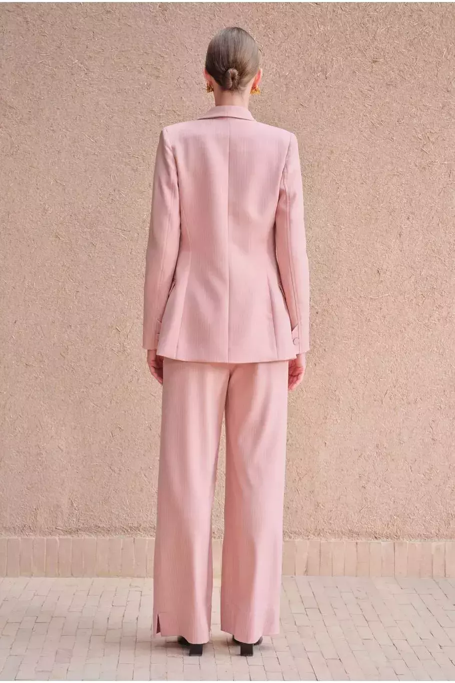 O Blazer Allana é a peça chave para um look clássico e sofisticado com um toque contemporâneo! Feito em tecido risca de giz, na delicada cor rosa fubá, ele apresenta modelagem alongada com fechamento transpassado por botões duplos, destacando a cintura de forma elegante. Com lapelas clássicas, mangas longas e bolsos com abas, o blazer traz um ar atemporal e refinado ao visual. Perfeito para compor produções formais ou para adicionar um toque de alfaiataria chic a combinações mais casuais com jeans e camiseta!