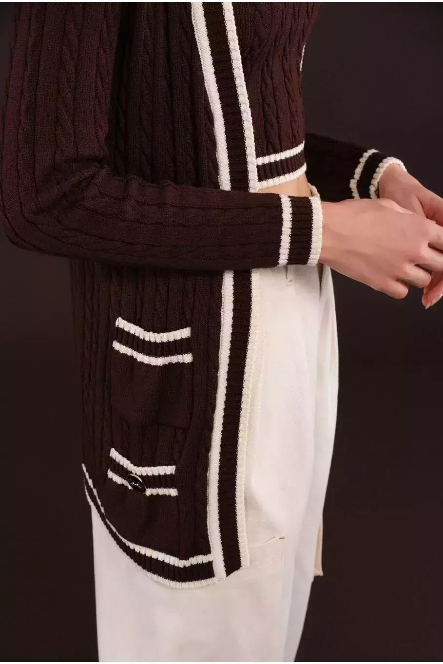 O CARDIGAN PAOLA é a terceira peça indispensável para um look elegante e sofisticado! Feito em tricot, ele apresenta um caimento impecável e textura sofisticada, proporcionando conforto e estilo. Sua modelagem alongada e sem fecho traz um toque contemporâneo, enquanto os detalhes em preto nas extremidades realçam a elegância da peça. Na cor marrom café, esse cardigan é perfeito para complementar diferentes produções, seja com a regata e saia Paola para um visual coordenado ou sobreposto a peças básicas para um look moderno e versátil!