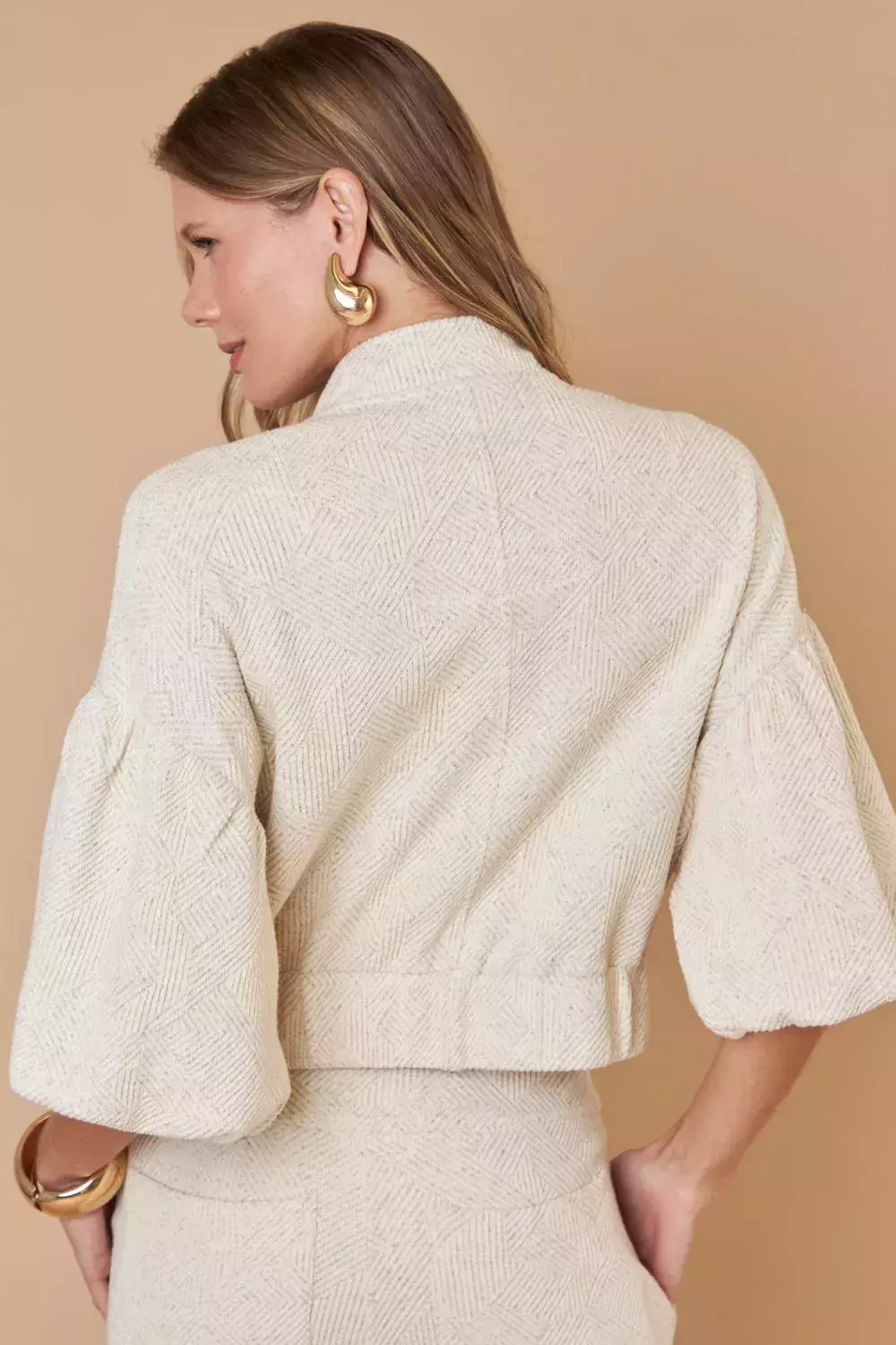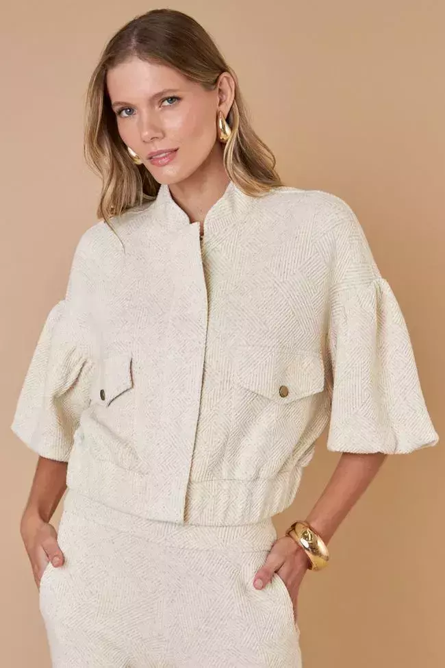 O Casaco Adriana une estrutura e estilo em uma peça marcante. Possui modelagem cropped com elástico na barra, mangas amplas ¾ com efeito balonê. Os bolsos frontais com aba e botão dão um toque utilitário ao visual, enquanto o fechamento frontal por zíper garante praticidade. Ideal para compor produções modernas, especialmente em conjunto com a Calça Adriana.