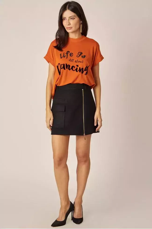 A mini saia Stephanie traz um design moderno e cheio de personalidade, unindo estilo e praticidade.Confeccionada em tecido com aspecto de tweed leve. Possui modelagem reta e estruturada que valoriza a silhueta de forma sofisticada. O zíper lateral de metal adiciona um toque contemporâneo, enquanto o bolso cargo traz um detalhe funcional e estiloso. Peça versátil, pode ser combinada com blusas ajustadas ou mais soltinhas para diferentes ocasiões.
