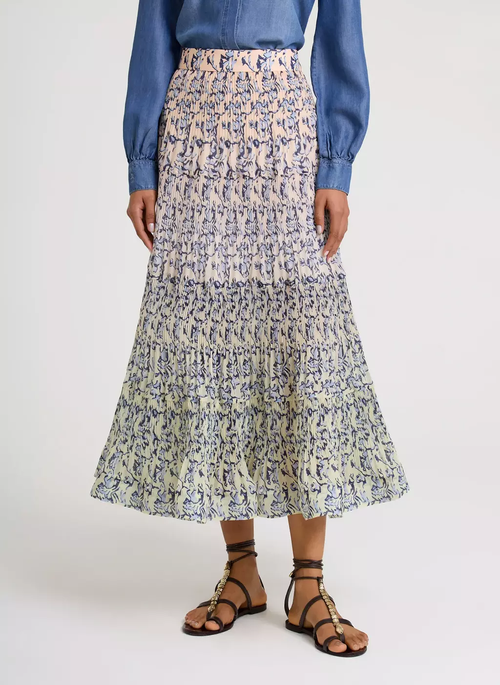 Com um toque de sofisticação, a Saia Trace é essencial para composições que pedem autenticidade e estilo. Combine-a com acessórios, camisa jeans e finalize com rasteira, para um look easychic. A Saia é confeccionado em organza com estampa, possui transparência e brilho acetinado, modelagem evasê, detalhe plissado, fechamento posterior por zíper invisível, comprimento midi e acabamento pespontado.